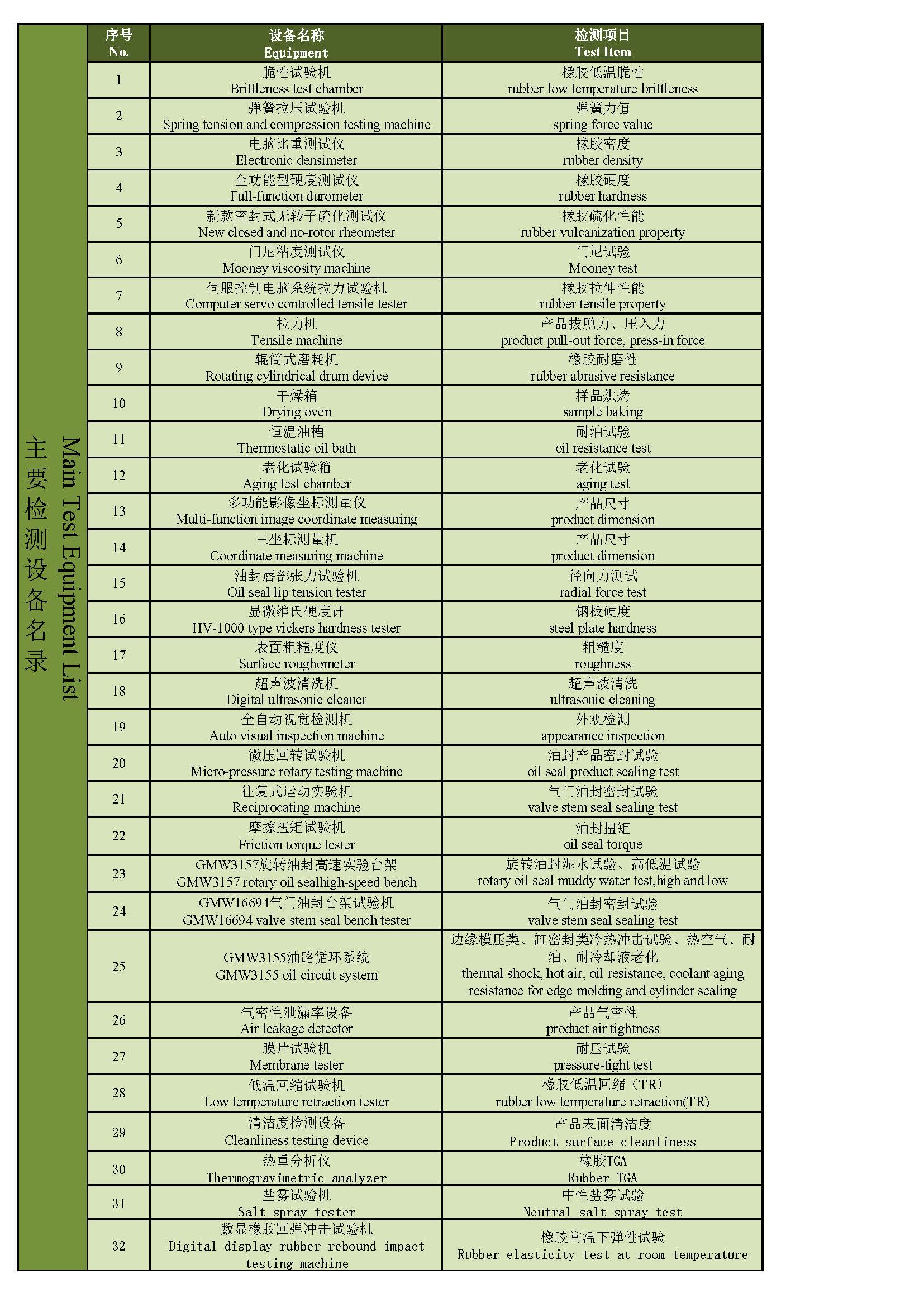 檢測設(shè)備名錄